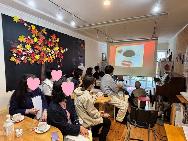 当日は、にしとも広場の職員の方と受講生8名が参加。コーヒーを飲みながら、ディアナ横濱の活動について説明の後、受講者からの質問も受けて、30分は、あっという間でした。
